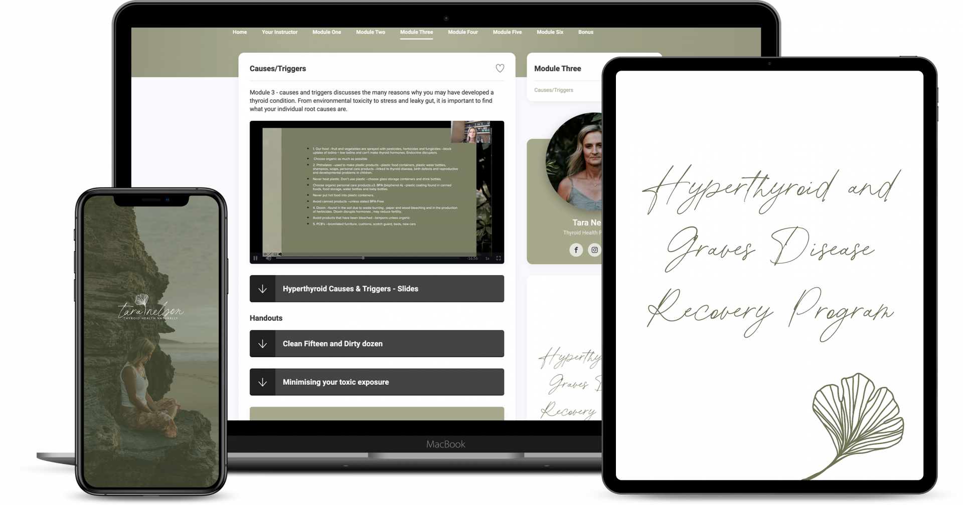 In the Hyperthyroid and Graves’ Disease Recovery program, I have spent 27 years gathering information from thousands of thyroid patients and my own personal thyroid-healing journey, to put together a step by step, easy thyroid restorative program that works and is based on the treatment guidelines I follow with all of my thyroid patients.